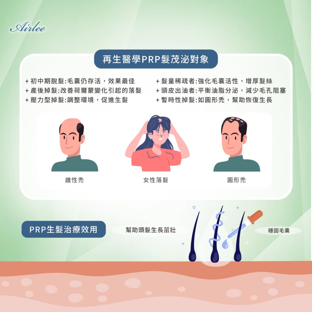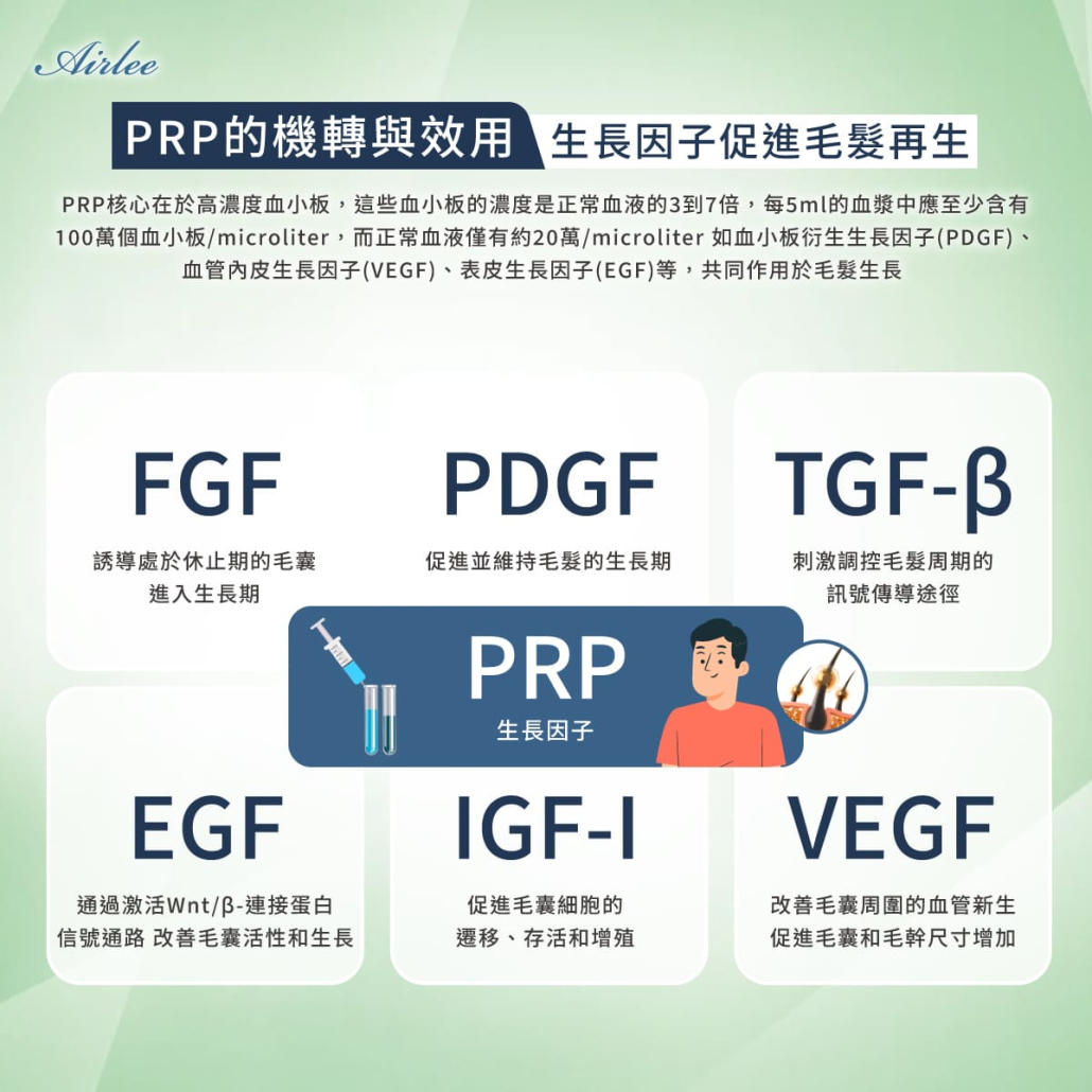 來自自體血液,經離心後分離出富含生長因子的血小板,注入頭皮可: