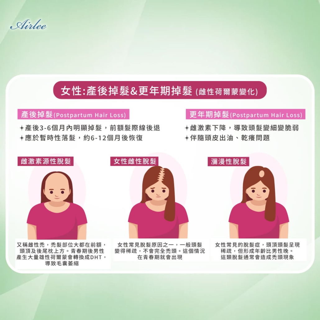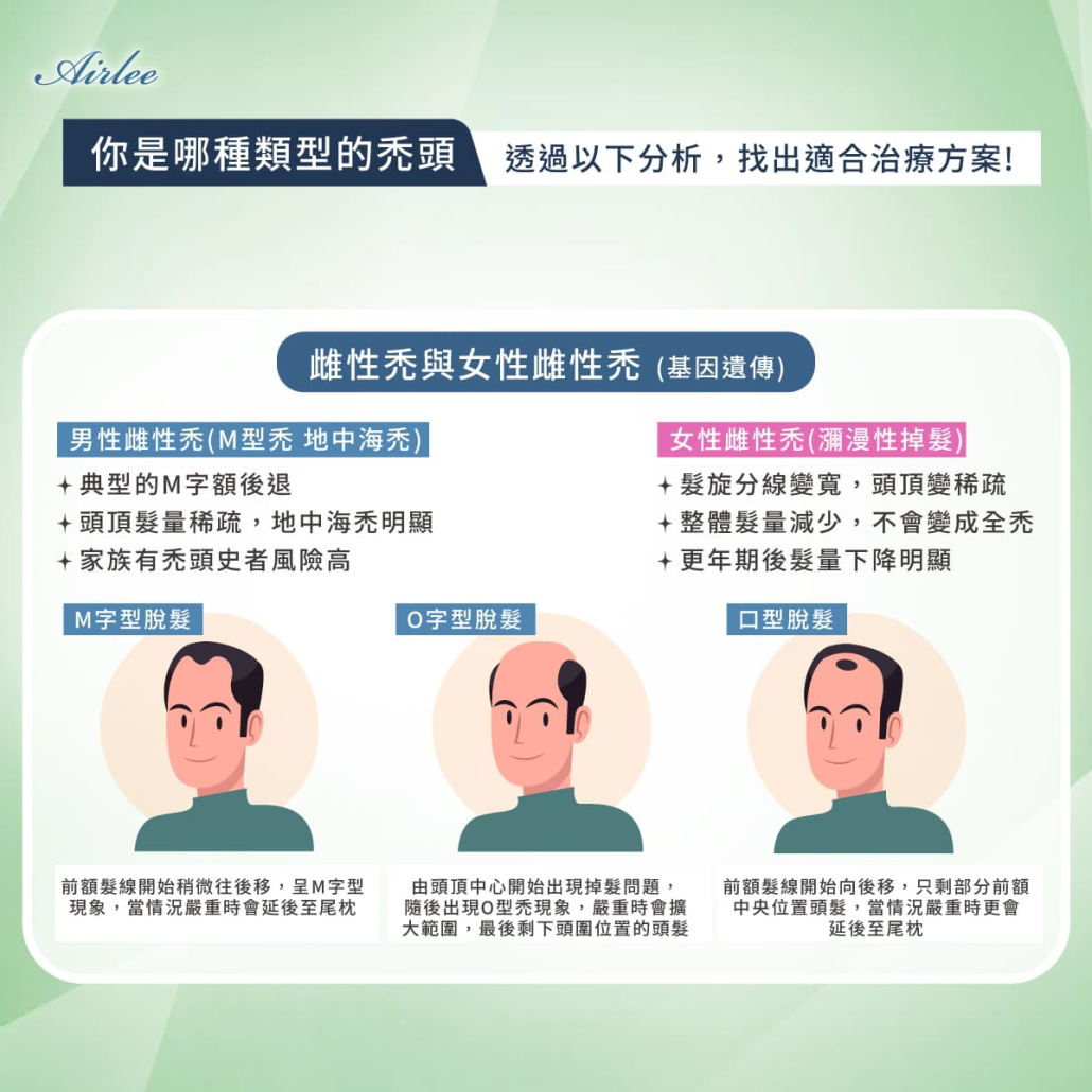 - 遺傳性禿髮(男性型禿髮、女性型禿髮)