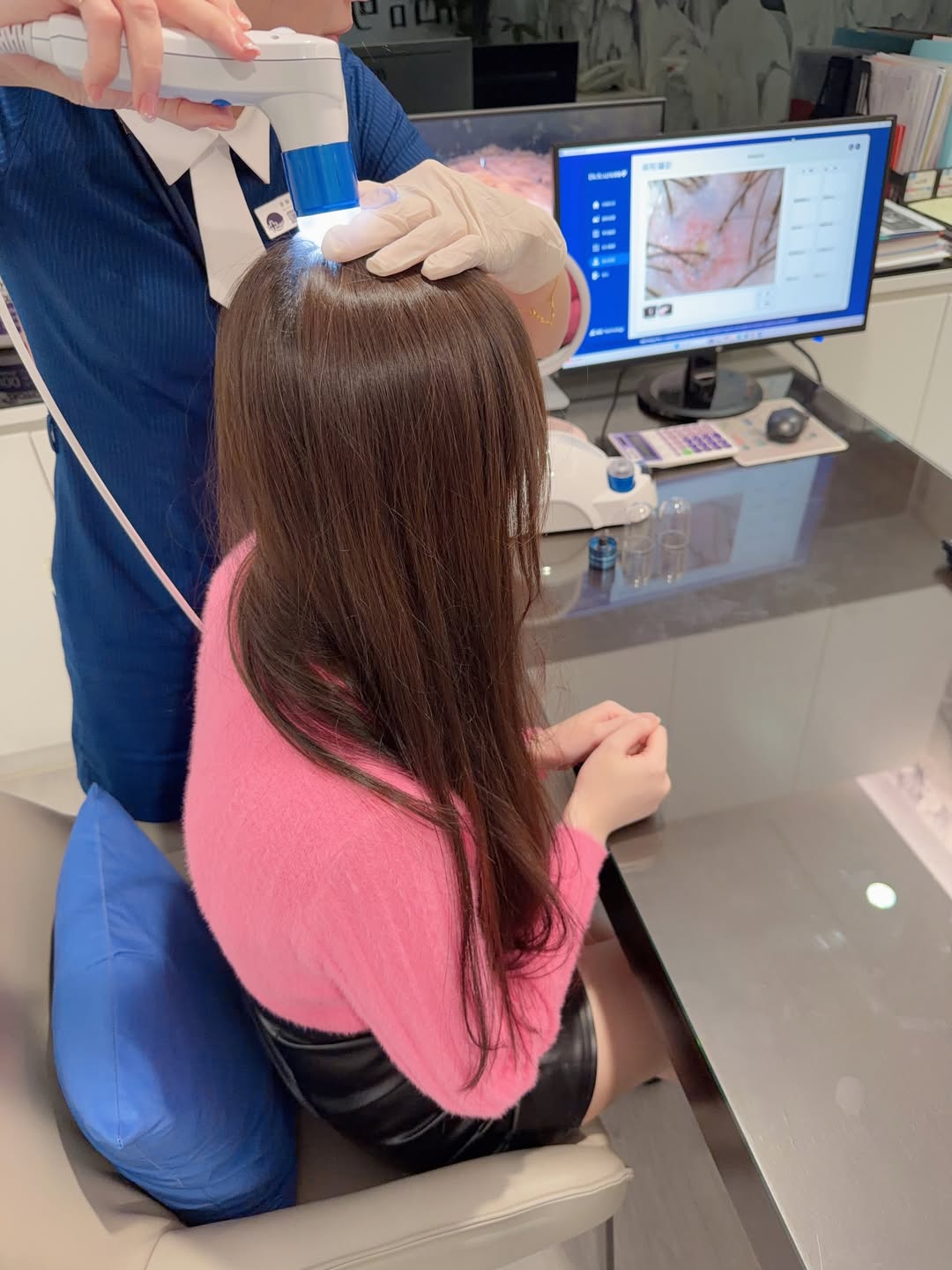 一開始院長會先用專業儀器檢測頭皮狀況,實際看到毛囊與頭皮健康程度,心裡也比較有底。