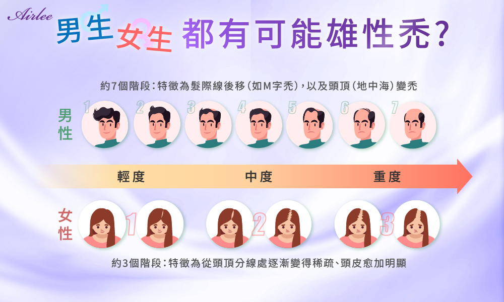 都可能出現毛囊逐漸萎縮、髮絲變細與髮量下降的狀況